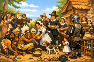 In 1621, after their first successful harvest, the colonists held a feast with the Wampanoag. This event is often remembered as the first Thanksgiving, though it was not yet a yearly holiday.
